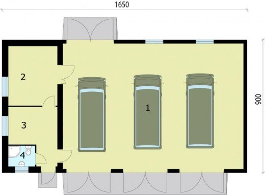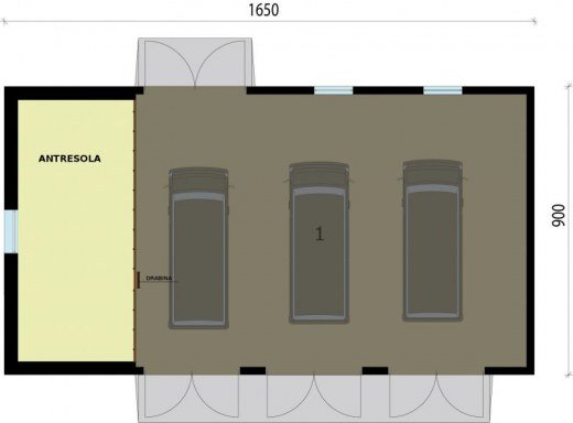 Budynek posiada 3 bramy garażowe o wymiarach 3000x3100.