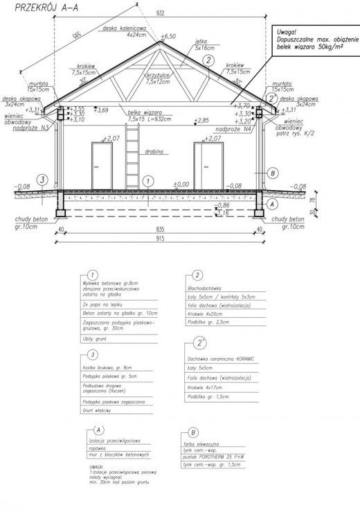 - konstrukcja więźby dachowej drewniana w układzie krokwiowo-jętkowym