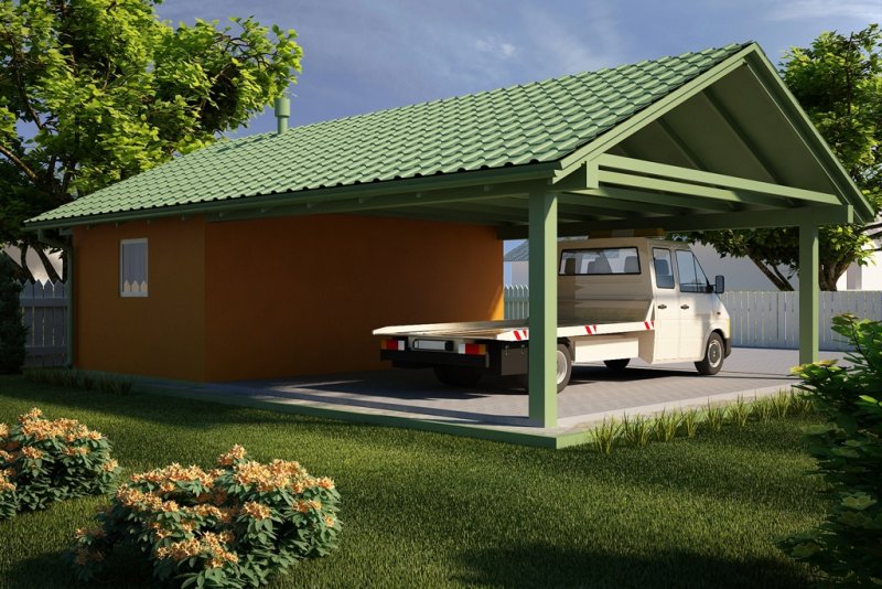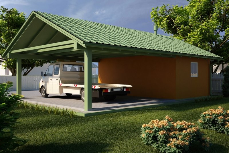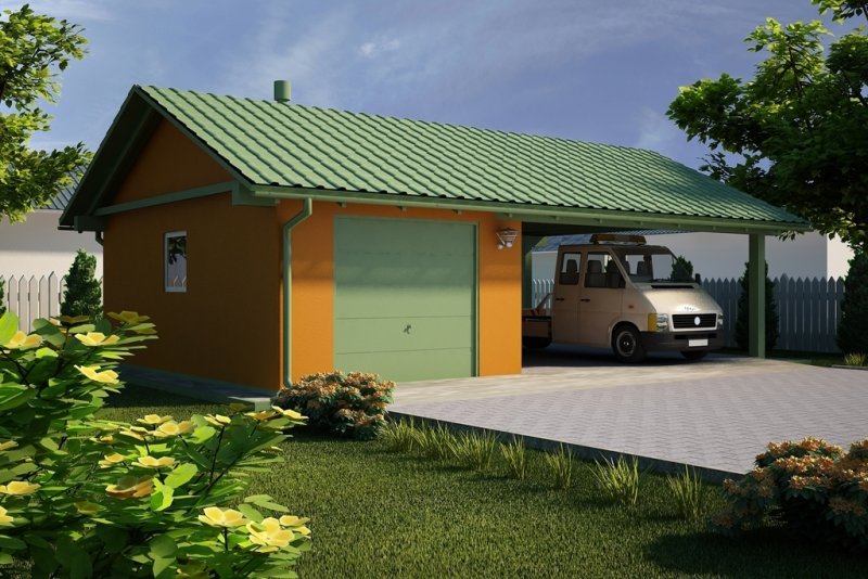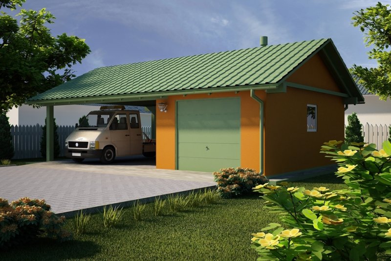 Projekt garażu jednostanowiskowego, parterowego, niepodpiwniczonego, przeznaczonego dla samochodów osobowych z wiatą. Do projektu dołączone jest zestawienie: stali, więźby dachowej oraz stolarki drzwiowej i okiennej, jak równieżbezpłatna zgoda na dokonanie zmian.