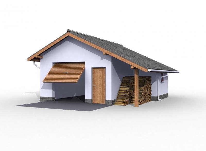 Garaż jednostanowiskowy z pomieszczeniem gospodarczym. Garaż posiada dodatkowo skład na drewno.