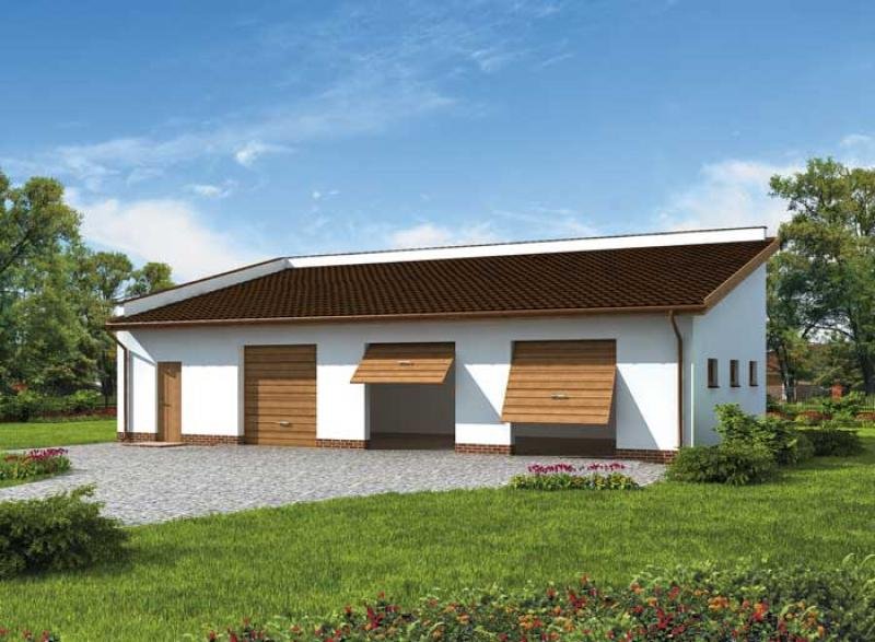 Projekt garażu trzystanowiskowego. Projekt garażu składa się z czterech egzemplarzy a w tym części architektonicznej, konstrukcyjnej i instalacji wewnętrznej elektrycznej. W projekcie załączone są podstawowe zestawienie stali, drewna i stolarki okienno-drzwiowej. Do projektu dołączamy bezpłatną zgodę na wprowadzenie zmian, oświadczenie projektantów o wykonaniu projektu zgodnie z obowiązującymi normami i przepisami oraz kserokopie uprawnień projektantów wraz z aktualnym wpisem do izby.