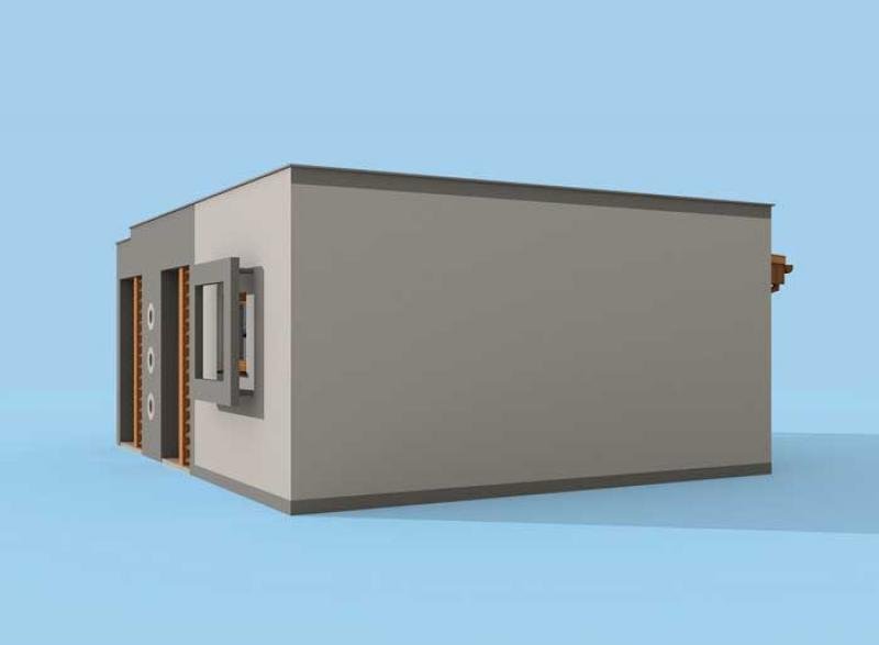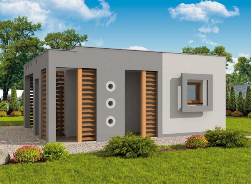 Budynek gospodarczy, wolnostojący. Projekt składa się z części architektonicznej, konstrukcyjnej i wewnętrznej instalacji elektrycznej. W projekcie załączone są podstawowe zestawienie stali, drewna i stolarki okienno-drzwiowej. Do projektu dołączamy bezpłatną zgodę na wprowadzenie zmian, oświadczenie projektantów o wykonaniu projektu zgodnie z obowiązującymi normami i przepisami oraz kserokopie uprawnień projektantów wraz z aktualnym wpisem do izby. W przypadku zamówienia projektu w technologii lekkiej, drewnianej konstrukcji szkieletowej, powierzchnia użytkowa budynku jest o około 7% większa.