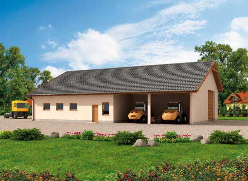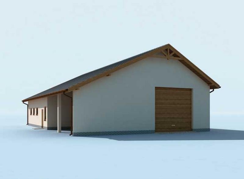 Projekt garażu dwustanowiskowego z pom. gosp. i wiatą G230.