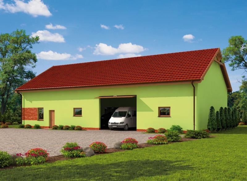 Budynek gospodarczy wolnostojący , może pełnić funkcję garażu , magazynu , przechowalni ( np. na owoce i warzywa ) lub hali magazynowej. Projekt garażu składa się z czterech egzemplarzy a w tym części architektonicznej, konstrukcyjnej i instalacji wewnętrznej elektrycznej. W projekcie załączone są podstawowe zestawienie stali, drewna i stolarki okienno-drzwiowej. Do projektu dołączamy bezpłatną zgodę na wprowadzenie zmian, oświadczenie projektantów o wykonaniu projektu zgodnie z obowiązującymi normami i przepisami oraz kserokopie uprawnień projektantów wraz z aktualnym wpisem do izby.