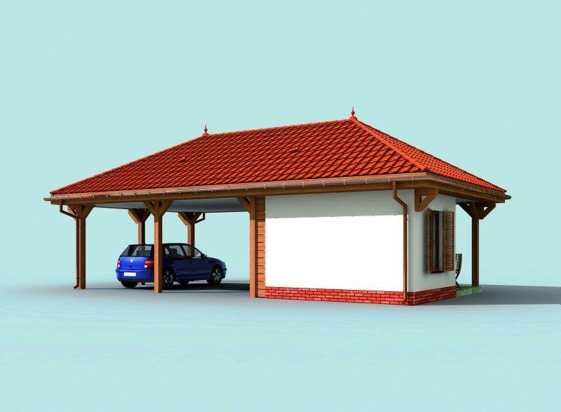 Budynek gospodarczy, wolnostojący. Projekt składa się z części architektonicznej, konstrukcyjnej i wewnętrznej instalacji elektrycznej. W projekcie załączone są podstawowe zestawienie stali, drewna i stolarki okienno-drzwiowej. Do projektu dołączamy bezpłatną zgodę na wprowadzenie zmian, oświadczenie projektantów o wykonaniu projektu zgodnie z obowiązującymi normami i przepisami oraz kserokopie uprawnień projektantów wraz z aktualnym wpisem do izby. W przypadku zamówienia projektu w technologii lekkiej, drewnianej konstrukcji szkieletowej, powierzchnia użytkowa budynku jest o około 7% większa.