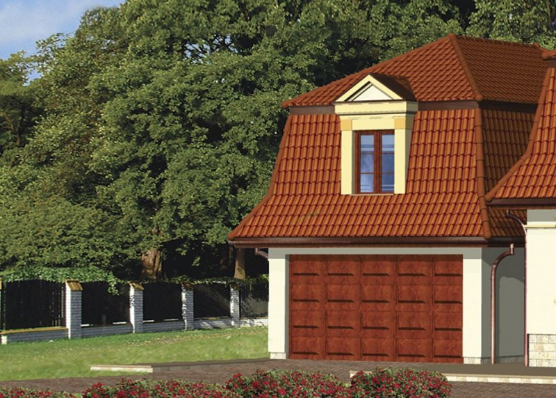 Wolnostojący garaż przeznaczony na dwa samochody.