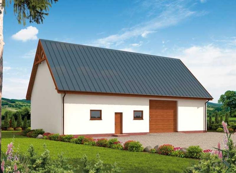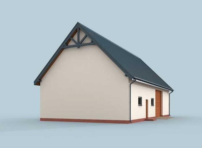 Budynek garażowy jednostanowiskowy z pomieszczeniem gospodarczym. Projekt składa się z części architektonicznej, konstrukcyjnej i wewnętrznej instalacji elektrycznej. W projekcie załączone są podstawowe zestawienie stali, drewna i stolarki okienno-drzwiowej. Do projektu dołączamy bezpłatną zgodę na wprowadzenie zmian, oświadczenie projektantów o wykonaniu projektu zgodnie z obowiązującymi normami i przepisami oraz kserokopie uprawnień projektantów wraz z aktualnym wpisem do izby. W przypadku zamówienia projektu w technologii lekkiej, drewnianej konstrukcji szkieletowej, powierzchnia użytkowa budynku jest o około 7% większa.