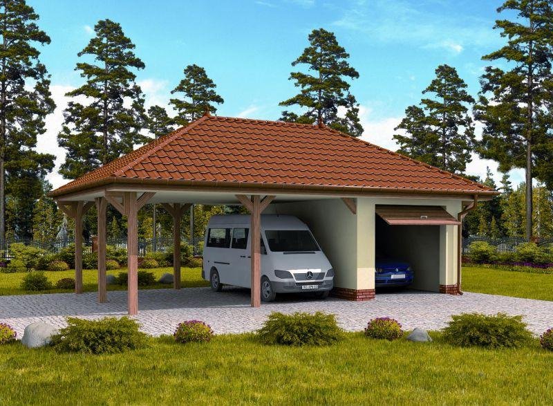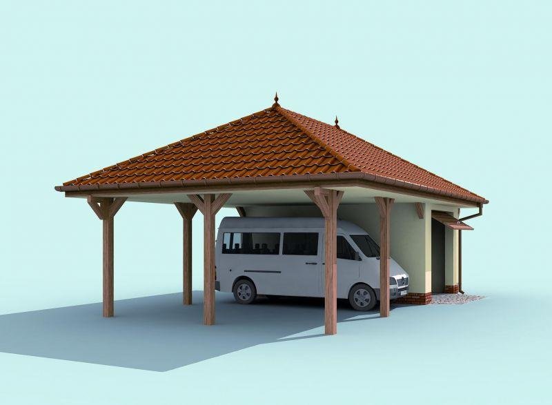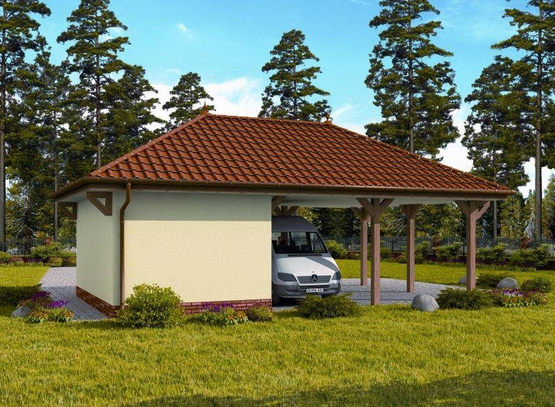 Garaż jednostnowiskowy z wiatą dwustanowskową.