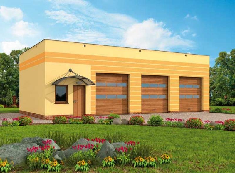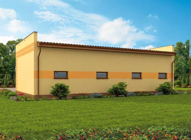 Budynek gospodarczy, wolnostojący. Projekt składa się z części architektonicznej, konstrukcyjnej i wewnętrznej instalacji elektrycznej. W projekcie załączone są podstawowe zestawienie stali, drewna i stolarki okienno-drzwiowej. Do projektu dołączamy bezpłatną zgodę na wprowadzenie zmian, oświadczenie projektantów o wykonaniu projektu zgodnie z obowiązującymi normami i przepisami oraz kserokopie uprawnień projektantów wraz z aktualnym wpisem do izby. W przypadku zamówienia projektu w technologii lekkiej, drewnianej konstrukcji szkieletowej, powierzchnia użytkowa budynku jest o około 7% większa.