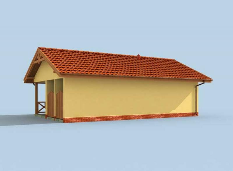 Budynek gospodarczy, wolnostojący. Projekt składa się z części architektonicznej, konstrukcyjnej i wewnętrznej instalacji elektrycznej. W projekcie załączone są podstawowe zestawienie stali, drewna i stolarki okienno-drzwiowej. Do projektu dołączamy bezpłatną zgodę na wprowadzenie zmian, oświadczenie projektantów o wykonaniu projektu zgodnie z obowiązującymi normami i przepisami oraz kserokopie uprawnień projektantów wraz z aktualnym wpisem do izby. W przypadku zamówienia projektu w technologii lekkiej, drewnianej konstrukcji szkieletowej, powierzchnia użytkowa budynku jest o około 7% większa.