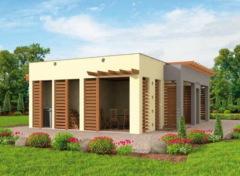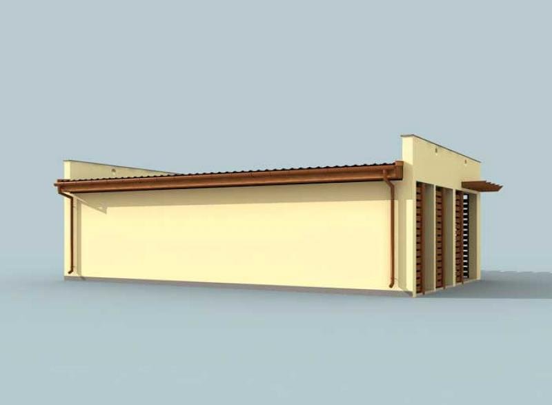Garaż dwustanowiskowy z wernadą i składem na drewno i odpady.