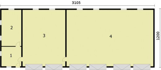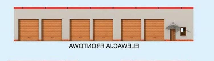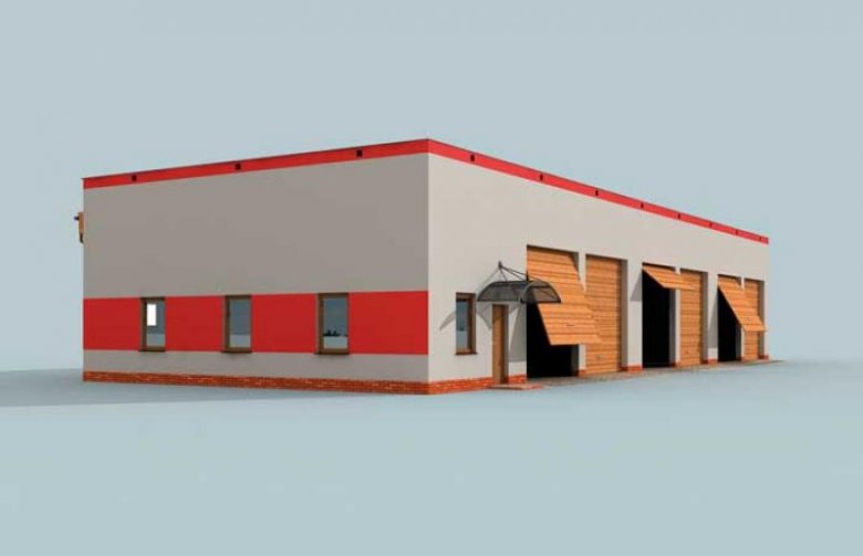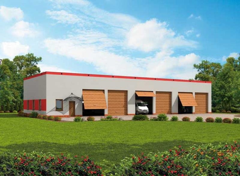 Garaż sześciostanowiskowy, wolnostojący, parterowy z pomieszczeniem gospodarczym i magazynowym.