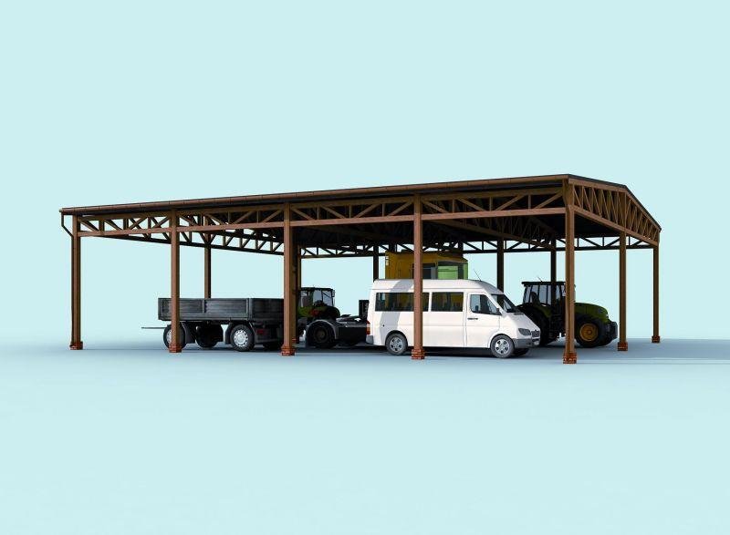 Wiata wolnostojąca, może pełnić funkcję garażową jak i również magazynową Projekt składa się z części architektonicznej, konstrukcyjnej i wewnętrznej instalacji elektrycznej. W projekcie załączone są podstawowe zestawienie stali, drewna i stolarki okienno-drzwiowej. Do projektu dołączamy bezpłatną zgodę na wprowadzenie zmian, oświadczenie projektantów o wykonaniu projektu zgodnie z obowiązującymi normami i przepisami oraz kserokopie uprawnień projektantów wraz z aktualnym wpisem do izby. W przypadku zamówienia projektu w technologii lekkiej, drewnianej konstrukcji szkieletowej, powierzchnia użytkowa budynku jest o około 7% większa.
