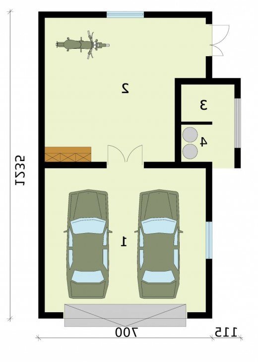 Garaż parterowy dwustanowiskowy z pomieszczeniem gospodarczym, ze składem na drewno i odpady.