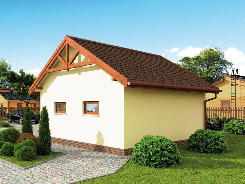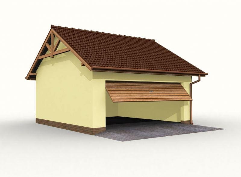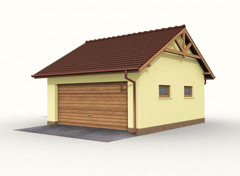 Garaż dwustanowiskowy w technologii szkieletowej, wolnostojący, parterowy.