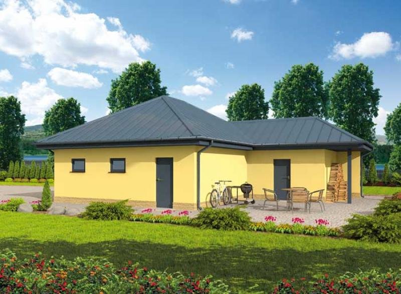 Budynek gospodarczy, wolnostojący. Projekt składa się z części architektonicznej, konstrukcyjnej i wewnętrznej insgtalacji elektrycznej. W projekcie załączone są podstawowe zestawienie stali, drewna i stolarki okienno-drzwiowej. Do projektu dołączamy bezpłatną zgodę na wprowadzenie zmian, oświadczenie projektantów o wykonaniu projektu zgodnie z obowiązującymi normami i przepisami oraz kserokopie uprawnień projektantów wraz z aktualnym wpisem do izby. W przypadku zamówienia projektu w technologii lekkiej, drewnianej konstrukcji szkieletowej, powierzchnia użytkowa budynku jest o około 7% większa.