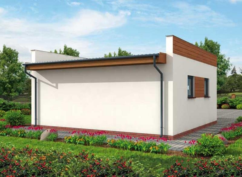 Budynek garażowy jednostanowiskowy z pomieszczeniem gospodarczym, wolnostojący, niepodpiwniczony. Projekt składa się z części architektonicznej, konstrukcyjnej i wewnętrznej instalacji elektrycznej. W projekcie załączone są podstawowe zestawienie stali, drewna i stolarki okienno-drzwiowej. Do projektu dołączone są: bezpłatna zgoda na wprowadzenie zmian, oświadczenie projektantów o wykonaniu projektu zgodnie z obowiązującymi normami i przepisami oraz kserokopie uprawnień projektantów wraz z aktualnym wpisem do izby. W przypadku zamówienia projektu w technologii lekkiej, drewnianej konstrukcji szkieletowej, powierzchnia użytkowa budynku jest o około 7% większa.