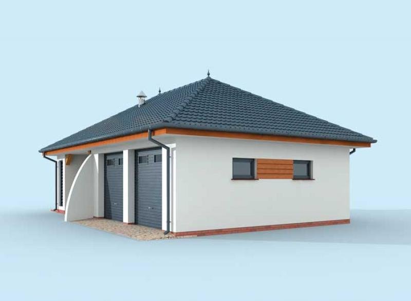Budynek gospodarczy, wolnostojący. Projekt składa się z części architektonicznej, konstrukcyjnej i wewnętrznej instalacji elektrycznej. W projekcie załączone są podstawowe zestawienie stali, drewna i stolarki okienno-drzwiowej. Do projektu dołączamy bezpłatną zgodę na wprowadzenie zmian, oświadczenie projektantów o wykonaniu projektu zgodnie z obowiązującymi normami i przepisami oraz kserokopie uprawnień projektantów wraz z aktualnym wpisem do izby. W przypadku zamówienia projektu w technologii lekkiej, drewnianej konstrukcji szkieletowej, powierzchnia użytkowa budynku jest o około 7% większa.