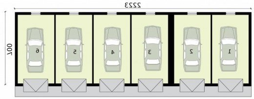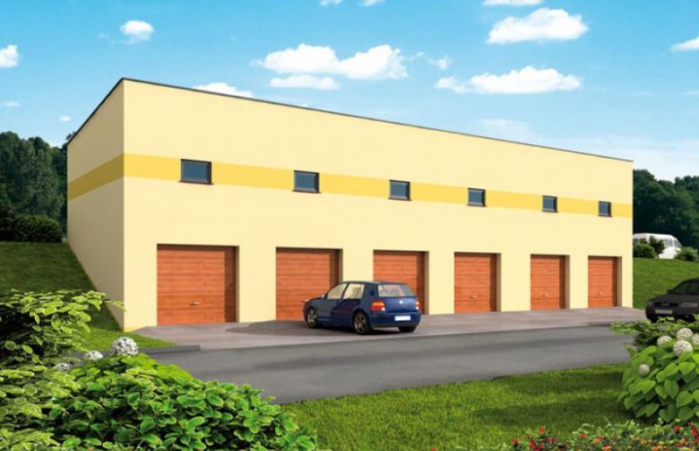 Garaż dwunastostanowiskowy, wolnostojący, piętrowy Wymiary bramy garażowej 2400x2400. Projekt składa się z części architektonicznej, konstrukcyjnej i wewnętrznej instalacji elektrycznej. W projekcie załączone są podstawowe zestawienie stali, drewna i stolarki okienno-drzwiowej. Do projektu dołączone są: bezpłatna zgoda na wprowadzenie zmian, oświadczenie projektantów o wykonaniu projektu zgodnie z obowiązującymi normami i przepisami oraz kserokopie uprawnień projektantów wraz z aktualnym wpisem do izby. W przypadku zamówienia projektu w technologii lekkiej, drewnianej konstrukcji szkieletowej, powierzchnia użytkowa budynku jest o około 7% większa.