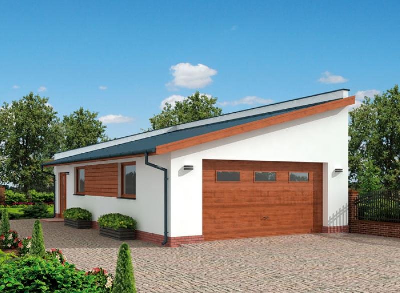 Garaż dwustanowiskowy, wolnostojący, parterowy z pom. gospodarczym. Wymiary bramy garażowej 5000x2400. Projekt składa się z części architektonicznej, konstrukcyjnej i wewnętrznej instalacji elektrycznej. W projekcie załączone są podstawowe zestawienie stali, drewna i stolarki okienno-drzwiowej. Do projektu dołączone są: bezpłatna zgoda na wprowadzenie zmian, oświadczenie projektantów o wykonaniu projektu zgodnie z obowiązującymi normami i przepisami oraz kserokopie uprawnień projektantów wraz z aktualnym wpisem do izby. W przypadku zamówienia projektu w technologii lekkiej, drewnianej konstrukcji szkieletowej, powierzchnia użytkowa budynku jest o około 7% większa.