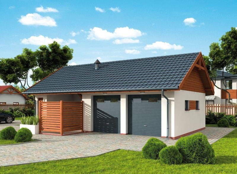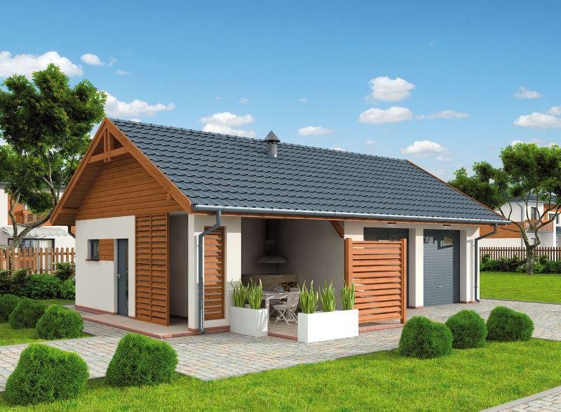 Garaż dwustanowiskowy z pomieszczeiem gospodarczym, altaną ogrodową z grillem i składem na drewno