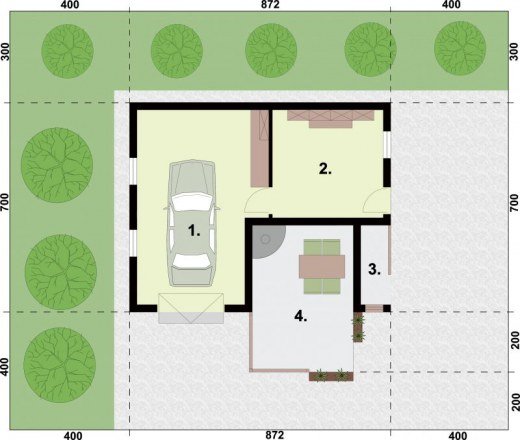 - Min. wymiary działki 16.72x14.00 m