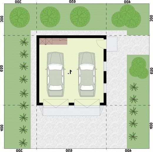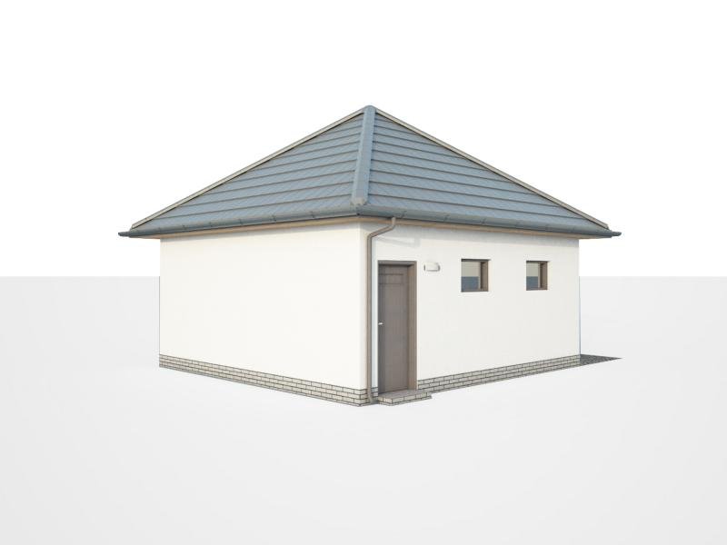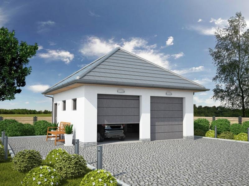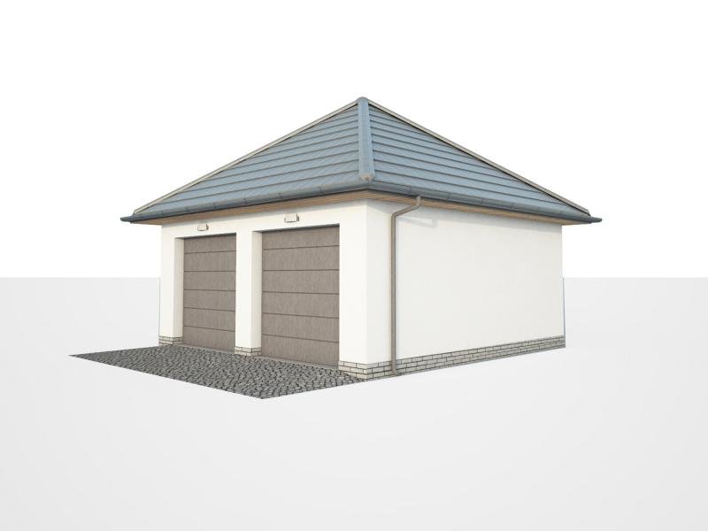 Garaż dwustanowiskowy z dachem czterospadowym.
