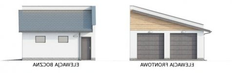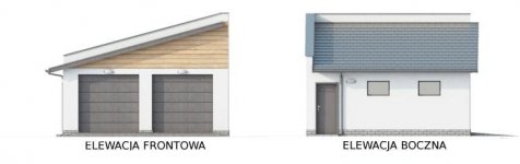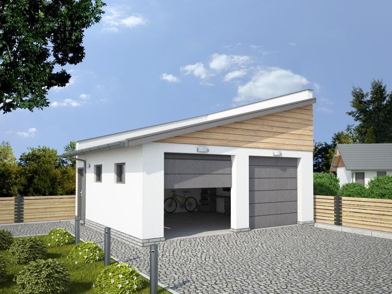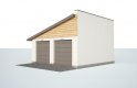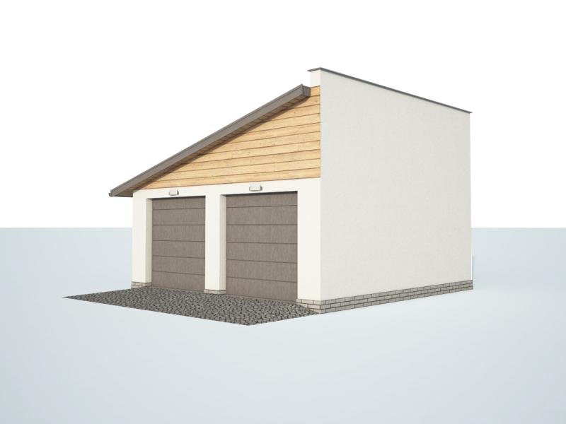 Garaż dwustanowiskowy z dachem jednospadowym, przystosowany do postawienia w granicy i narożniku działki