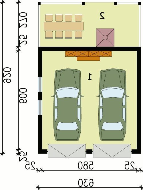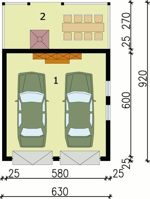 Garaż dwustanowiskowy, wolnostojący, parterowy z werandą. Wymiary bramy garażowej 2400x2400. Projekt garażu składa się z czterech egzemplarzy a w tym części architektonicznej, konstrukcyjnej i instalacji wewnętrznej elektrycznej. W projekcie załączone są podstawowe zestawienie stali, drewna i stolarki okienno-drzwiowej. Do projektu dołączamy bezpłatną zgodę na wprowadzenie zmian, oświadczenie projektantów o wykonaniu projektu zgodnie z obowiązującymi normami i przepisami oraz kserokopie uprawnień projektantów wraz z aktualnym wpisem do izby.