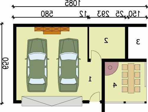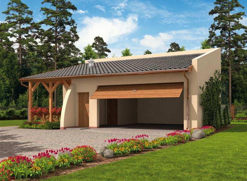 Garaż dwustanowiskowy, wolnostojący, parterowy z pom. gospodarczym, składem na drewno i altaną ogrodową. Wymiary bramy garażowej 5000x2250.