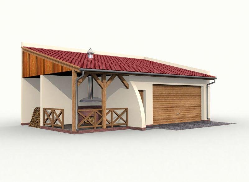 Garaż dwustanowiskowy w technologii szkieletowej, wolnostojący. Brama garażowa o wymiarach 5000x2200. Garaż posiada dodatkowe pomieszczenie gospodarcze, skład na drewno i altanę.