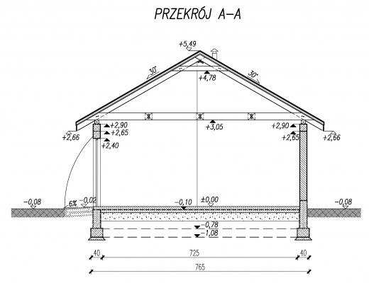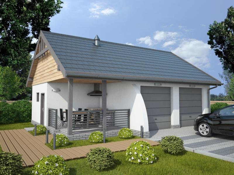 Budynek gospodarczy, wolnostojący. Projekt składa się z części architektonicznej, konstrukcyjnej i wewnętrznej instalacji elektrycznej. W projekcie załączone są podstawowe zestawienie stali, drewna i stolarki okienno-drzwiowej. Do projektu dołączamy bezpłatną zgodę na wprowadzenie zmian, oświadczenie projektantów o wykonaniu projektu zgodnie z obowiązującymi normami i przepisami oraz kserokopie uprawnień projektantów wraz z aktualnym wpisem do izby. W przypadku zamówienia projektu w technologii lekkiej, drewnianej konstrukcji szkieletowej, powierzchnia użytkowa budynku jest o około 7% większa.