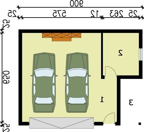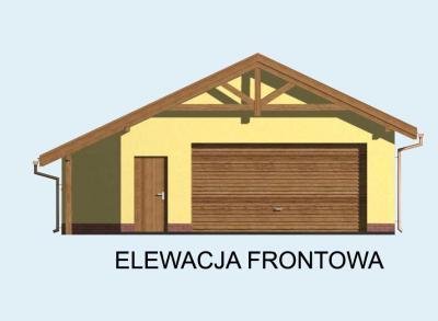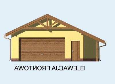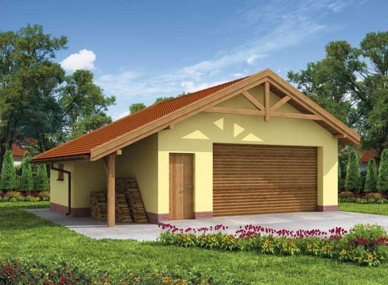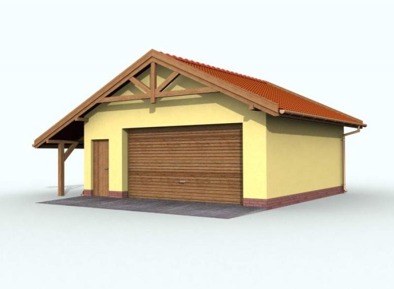 GARAŻ G58 dwustanowiskowy z pomieszczeniem gospodarczym i składem na drewno opałowe. Wymiary bramy garażowej 500x2400.