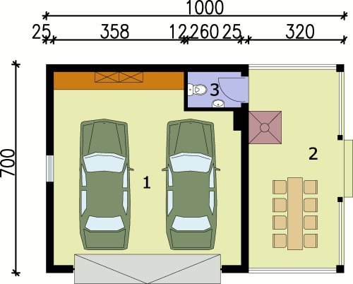 Garaż dwustanowiskowy, wolnostojacy z WC oraz altaną ogrodową. Projekt garażu składa się z czterech egzemplarzy a w tym części architektonicznej, konstrukcyjnej i instalacji wewnętrznej elektrycznej. W projekcie załączone są podstawowe zestawienie stali, drewna i stolarki okienno-drzwiowej. Do projektu dołączamy bezpłatną zgodę na wprowadzenie zmian, oświadczenie projektantów o wykonaniu projektu zgodnie z obowiązującymi normami i przepisami oraz kserokopie uprawnień projektantów wraz z aktualnym wpisem do izby.