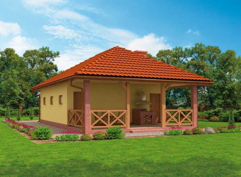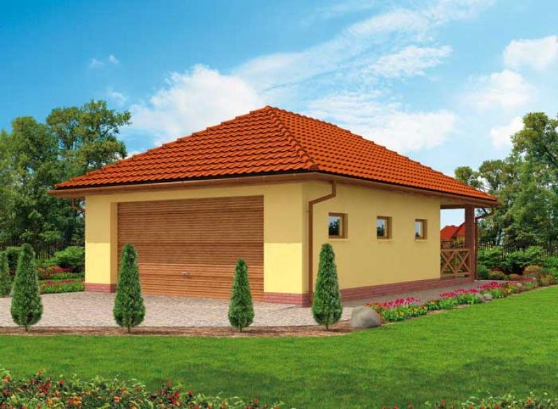 Projekt garażu dwustanowiskowego. Garaż posiada dodatkowo pom. gospodarcze, altanę oraz WC. Projekt garażu składa się z czterech egzemplarzy a w tym części architektonicznej, konstrukcyjnej i instalacji wewnętrznej elektrycznej. W projekcie załączone są podstawowe zestawienie stali, drewna i stolarki okienno-drzwiowej. Do projektu dołączamy bezpłatną zgodę na wprowadzenie zmian, oświadczenie projektantów o wykonaniu projektu zgodnie z obowiązującymi normami i przepisami oraz kserokopie uprawnień projektantów wraz z aktualnym wpisem do izby.