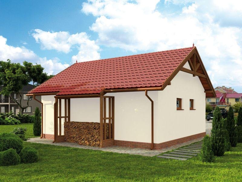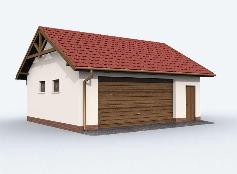 Garaż dwustanowiskowy w technologii szkieletowej, wolnostojący, parterowy.