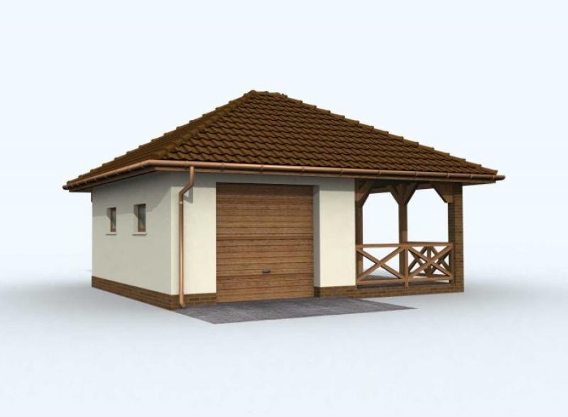 Garaż jednostanowiskowy z werandą. Projekt garażu składa się z czterech egzemplarzy a w tym części architektonicznej, konstrukcyjnej i instalacji wewnętrznej elektrycznej. W projekcie załączone są podstawowe zestawienie stali, drewna i stolarki okienno-drzwiowej. Do projektu dołączamy bezpłatną zgodę na wprowadzenie zmian, oświadczenie projektantów o wykonaniu projektu zgodnie z obowiązującymi normami i przepisami oraz kserokopie uprawnień projektantów wraz z aktualnym wpisem do izby.
