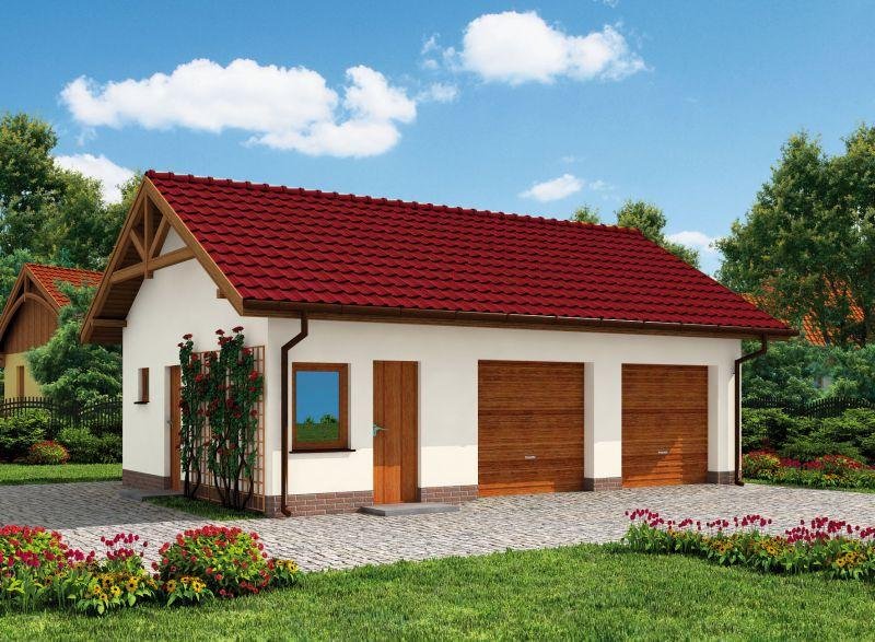 Garaż jednostanowiskowyw technologii szkieletowej, wolnostojący, parterowy.