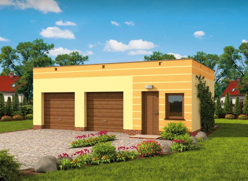 Projekt garażu dwustanowiskowego z pom. gospodarczymi.