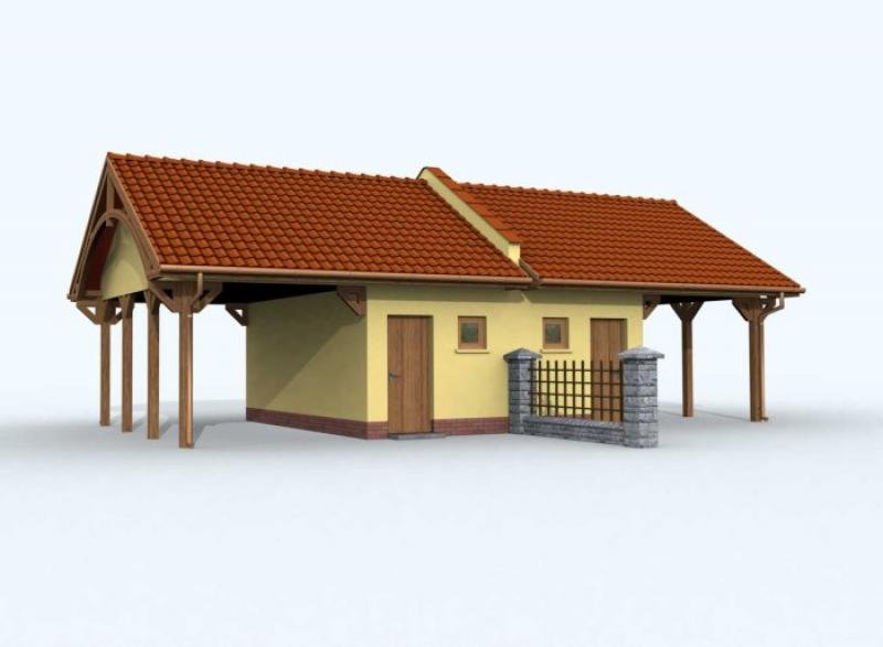 Projekt wiaty jednostanowiskowa z pom. gospodarczym w zabudowie bliźniaczej.