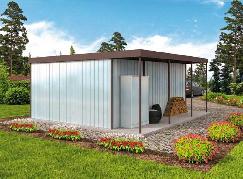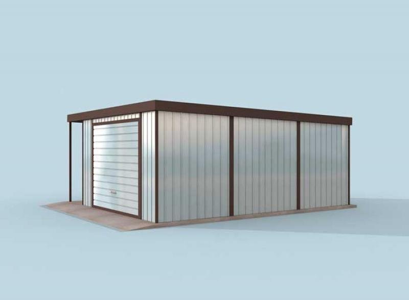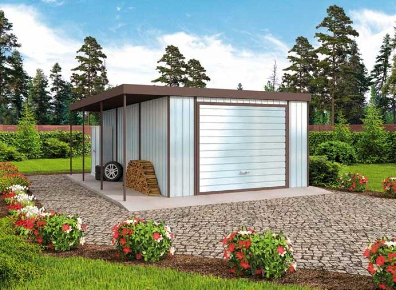 Budynek garażowy blaszany z wiatą , wolnostojący , 1 stanowiskowy.