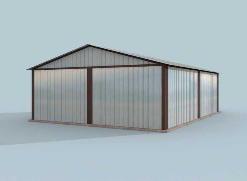 Budynek garażowy blaszany, wolnostojący, 2 stanowiskowy. Projekt składa się z części architektonicznej, konstrukcyjnej i wewnętrznej instalacji elektrycznej. Do projektu dołączamy bezpłatną zgodę na wprowadzenie zmian, oświadczenie projektantów o wykonaniu projektu zgodnie z obowiązującymi normami i przepisami oraz kserokopie uprawnień projektantów wraz z aktualnym wpisem do izby.