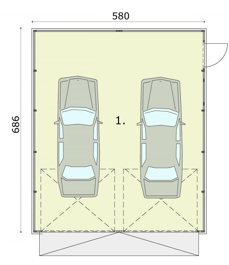 Budynek gospodarczy, wolnostojący. Projekt składa się z części architektonicznej, konstrukcyjnej i wewnętrznej instalacji elektrycznej. W projekcie załączone są podstawowe zestawienie stali, drewna i stolarki okienno-drzwiowej. Do projektu dołączamy bezpłatną zgodę na wprowadzenie zmian, oświadczenie projektantów o wykonaniu projektu zgodnie z obowiązującymi normami i przepisami oraz kserokopie uprawnień projektantów wraz z aktualnym wpisem do izby. W przypadku zamówienia projektu w technologii lekkiej, drewnianej konstrukcji szkieletowej, powierzchnia użytkowa budynku jest o około 7% większa.