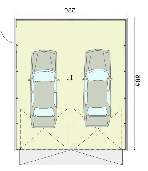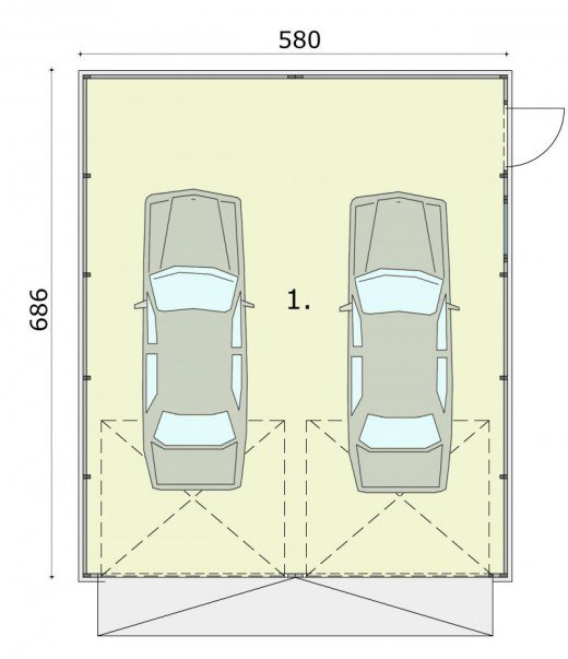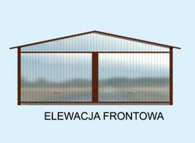 Projekt garażu blaszanego dwustanowiskowego. Dwie bramy garażowe o wymiarach 2,50x2,125m.