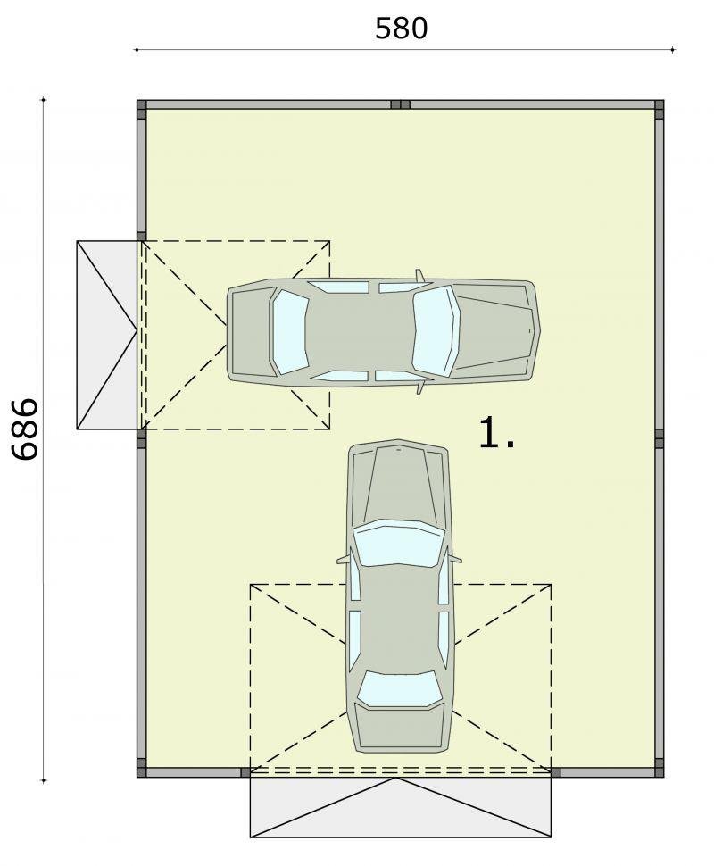 Budynek gospodarczy, wolnostojący. Projekt składa się z części architektonicznej, konstrukcyjnej i wewnętrznej instalacji elektrycznej. W projekcie załączone są podstawowe zestawienie stali, drewna i stolarki okienno-drzwiowej. Do projektu dołączamy bezpłatną zgodę na wprowadzenie zmian, oświadczenie projektantów o wykonaniu projektu zgodnie z obowiązującymi normami i przepisami oraz kserokopie uprawnień projektantów wraz z aktualnym wpisem do izby. W przypadku zamówienia projektu w technologii lekkiej, drewnianej konstrukcji szkieletowej, powierzchnia użytkowa budynku jest o około 7% większa.