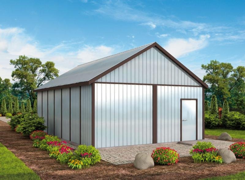 Budynek garażowy blaszany, wolnostojący, 2 stanowiskowy Wymiary budynku : 5,80 x 8,74 Wymiary bram garażowych : 5,00 x 2,125 Kąt dachu : 30 stopni Projekt składa się z części architektonicznej, konstrukcyjnej i wewnętrznej instalacji elektrycznej. Do projektu dołączone są: bezpłatna zgoda na wprowadzenie zmian, oświadczenie projektantów o wykonaniu projektu zgodnie z obowiązującymi normami i przepisami oraz kserokopie uprawnień projektantów wraz z aktualnym wpisem do izby.