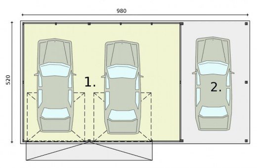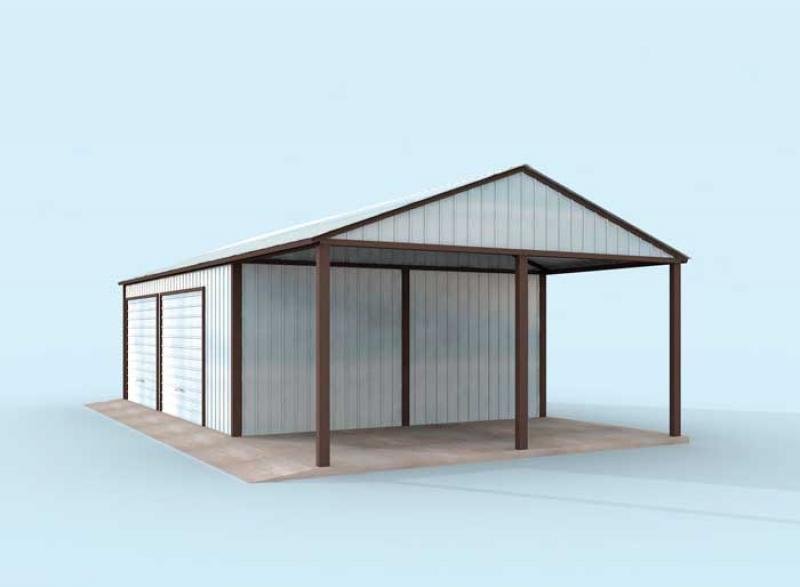 Budynek garażowy blaszany, wolnostojący, 2 stanowiskowy z wiatą