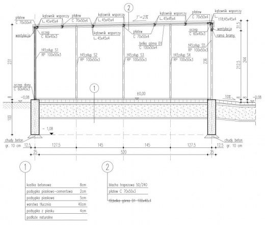 - główną konstrukcję nośną stanowią stopy betonowe oraz stalowy szkielet.
