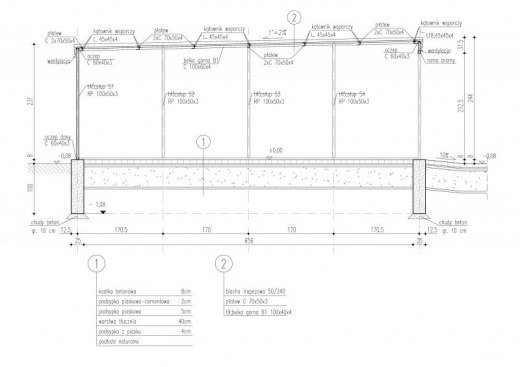 - pokrycie dachu z blachy trapezowej - wypełnienie ścian z paneli ściennych