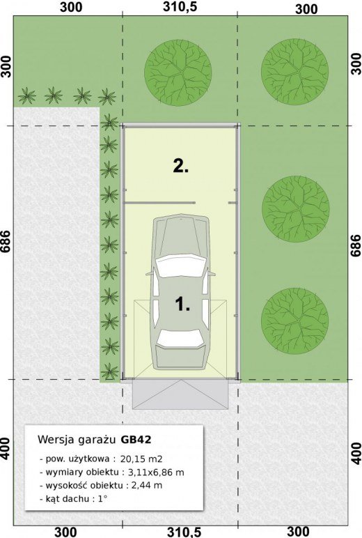 - szerekość i długość budyknu 3,015x6,86m